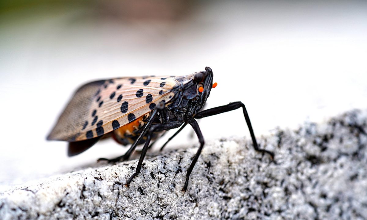 Spotted lanternflies are highly invasive insects that first appeared in the U.S. in 2014. They have brown top wings, red second wings, and black spots. They’re sap-sucking insects, which leave oozing bite wounds in plants. The wounds are easily infected, and the waste left behind by a spotted lanternfly is a common fuel for fungal infections.