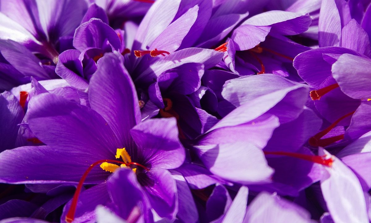 Saffron is the dried style and stigma of the saffron crocus, also called the autumn crocus or Crocus sativus. The style and stigma are the parts of the flower that collect the pollen and transfer it to the plant’s ovaries to create seeds. In the saffron crocus, these are bright red and typically longer than the rest of the flower, making them easy to spot.