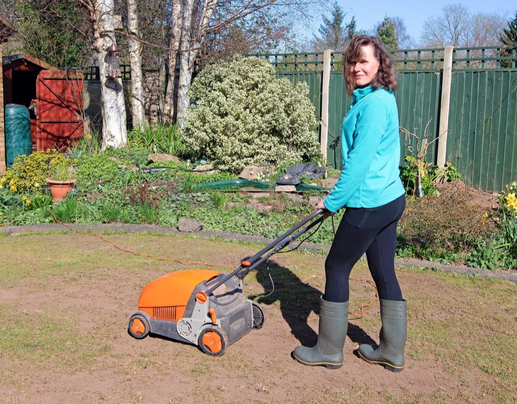 - Turn the mower on its side and thoroughly clean the undercarriage. It needs to be clean, so turn up the hose and blast away those caked-on bits of sod and soil. A wash in warm, soapy water can also be helpful.