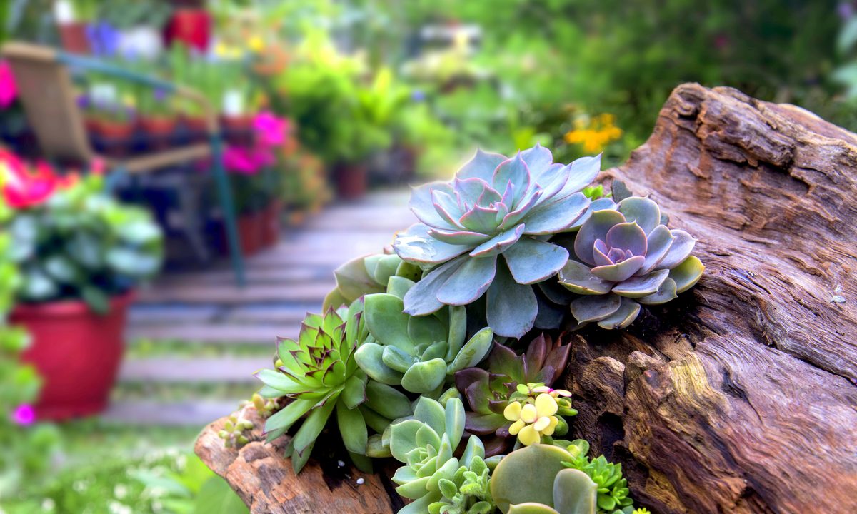Furnishing logs with succulents